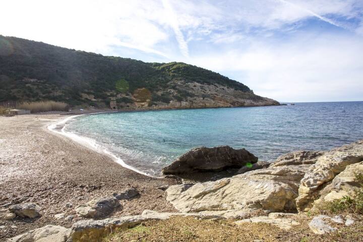 Ჩვენ ვიმყოფებით ნისპორტოში, ზღვიდან 300 მეტრში, რიო ‑ ელბას მხარეს. Ეს არის ქვიშისა და პატარა კენჭების შერეული პლაჟი, თევზებით სავსე კრისტალური ზღვით, რომელიც იდეალურია კანოეთი ან სნორკელინგისთვის. Მდებარეობა შესაფერისია მათთვის, ვინც ეძებს ბუნებით გარშემორტყმულ სიმშვიდეს, კუნძულის ველურ გულში. Ულამაზესი ახლომდებარე საცხოვრებლები, მათ შორის, ზუპინიანო და სეჩე, კაპო-პოროს დაუვიწყარი პლაჟები იმსახურებს გემით მოგზაურობას. Პლაჟი აღჭურვილია ბარებითა და რესტორნებითა და მინიმარკეტით.