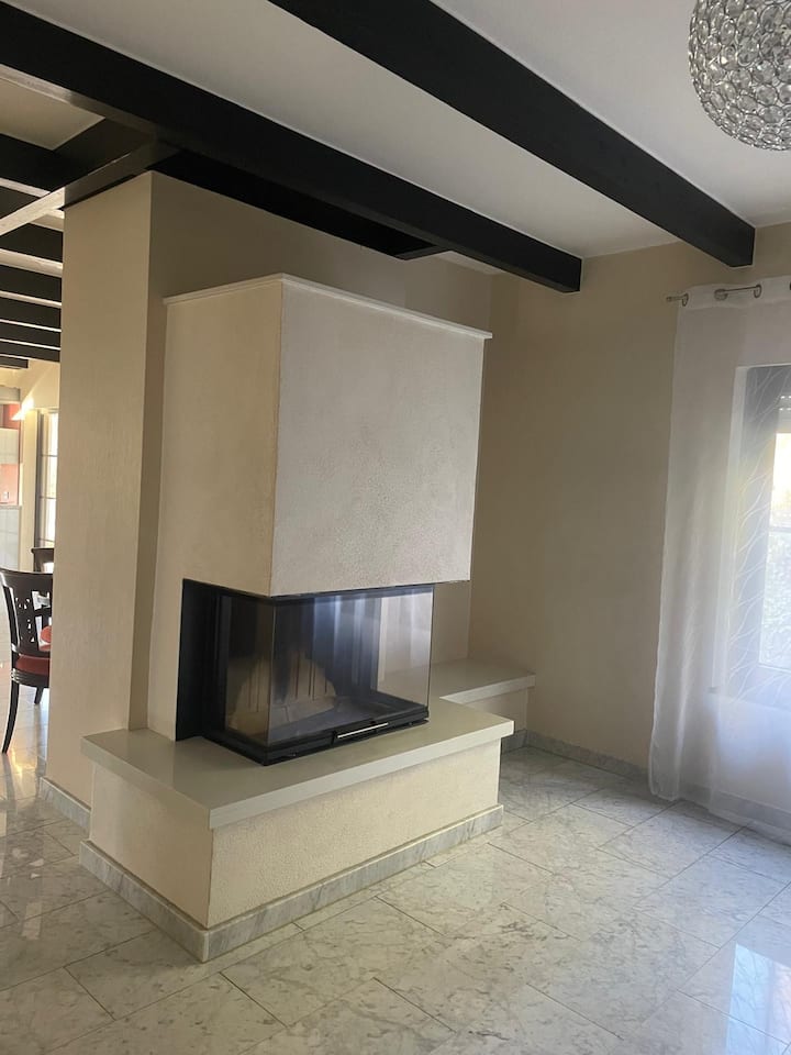 Ლამაზი 3ZW სასადილო ოთახით, ბუხრით, ტერასით, სიწყნარით.