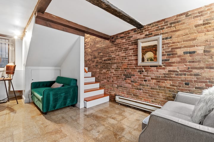 იცხოვრეთ ბოსტონის უძველესი უბნის ცენტრში, თავისუფლების ბილიკის მახლობლად მდებარე მშვიდ ქუჩაზე.