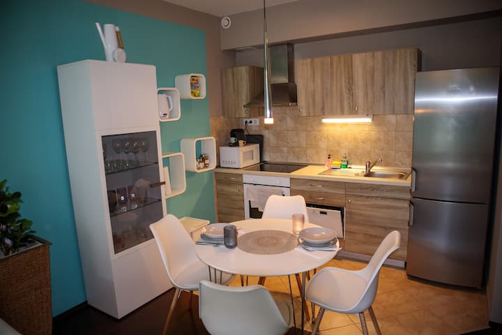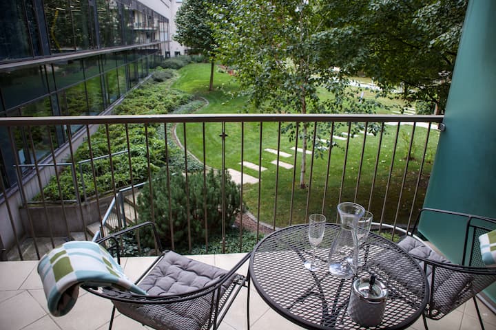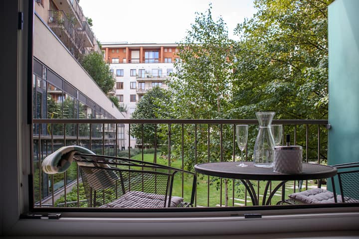 Აღმოაჩინეთ ეს დახვეწილი და მყუდრო 1-საძინებლიანი ბინა კორვინის პრომენადის შუაგულში. Სრულად აღჭურვილია თანამედროვე დეკორით და გთავაზობთ ყველა პირველადი საჭიროების საყოფაცხოვრებო პირობას კომფორტული სტუმრობისთვის, მათ შორის, A/C, მაღალსიჩქარიანი Wi ‑ Fi, ტელევიზორი, სარეცხი მანქანა და Nespresso-ს აპარატი. Პატარა ცალკე აივანი გადაჰყურებს მშვიდ მწვანე ეზოს, რომელიც იდეალური ადგილია განტვირთვისთვის. Ახლომდებარე მაღაზიებით, რესტორნებითა და შესანიშნავი საზოგადოებრივი ტრანსპორტით სავსე ტერიტორიაზე მდებარე ეს ბინა იდეალურია როგორც მოკლე, ისე გრძელი ვადით სტუმრობისთვის.