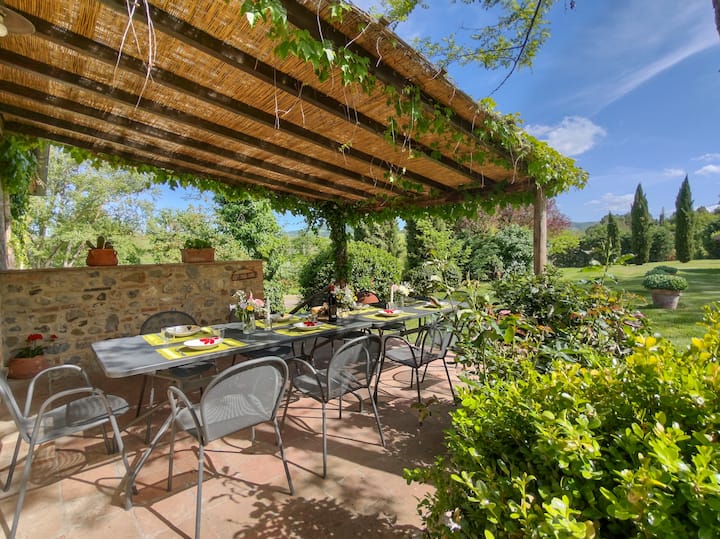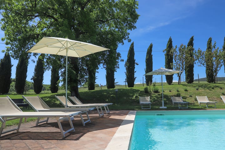 Სოფლის სახლი კერძო აუზითა და ბაღით სიენასთან ახლოს