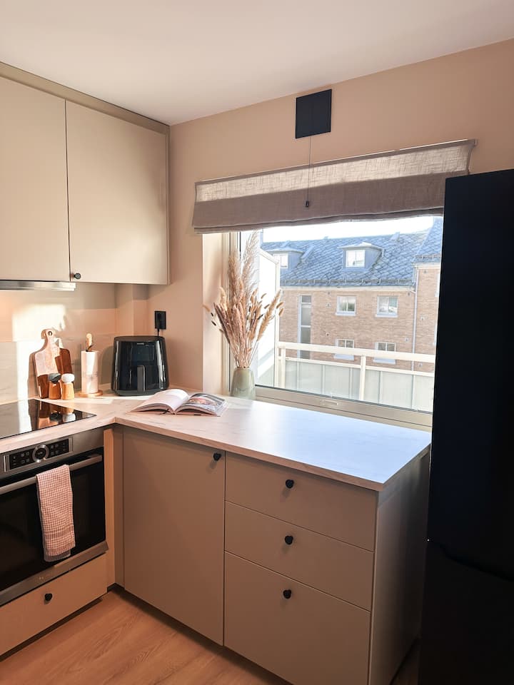 Ცენტრალური და ახლად მოწყობილი ბინა, უფასო პარკირების ადგილი