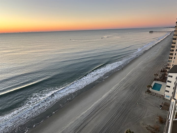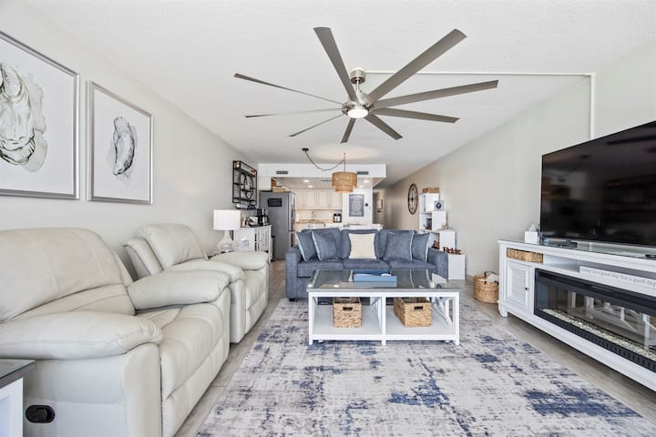 Კეთილი იყოს თქვენი მობრძანება ჩვენს საცხოვრებელში პლაჟზე ~ Water's Edge 1509! Ეს უმაღლესი სართულის, 1-საწოლიანი, 2-საწოლიანი კონდომინიუმი გთავაზობთ სანაპიროს ფუფუნებას ოკეანის თვალწარმტაცი ხედებით. Დაისვენეთ მისაღებ ოთახში დედოფლის გამოსაწევი დივნით, სამაგრებით, 42-დუიმიანი ბუხრით და 65 "-იანი სმარტ-ტელევიზორით. Სამზარეულო სრულად აღჭურვილია, საძინებელში კი დგას დიდი საწოლი, 55"-იანი ტელევიზორი და 72" -იანი ჭერის ვენტილატორი. Დატკბით სიმშვიდით, სიწყნარითა და ტალღების ხმით თქვენი პირადი აივნიდან. Დაჯავშნეთ ახლა და მიიღეთ იდეალური ვარიანტი პლაჟისპირა დასვენებისთვის!