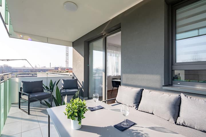 Მზიანი - აივანი - ძალიან თანამედროვე - მდინარის გვერდით