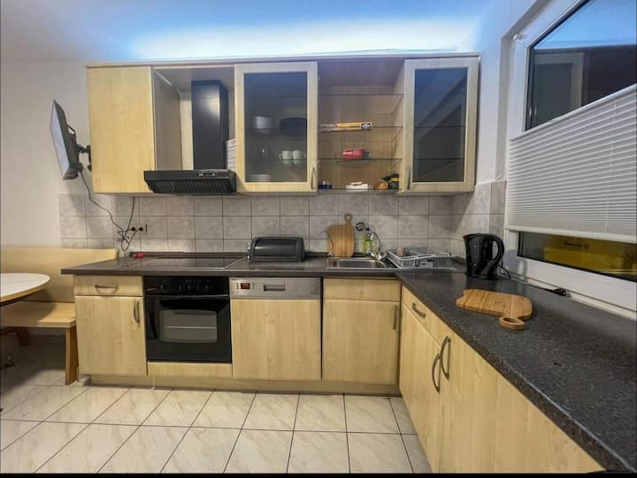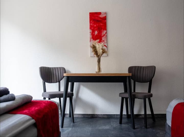 Კეთილი იყოს თქვენი მობრძანება ჩვენს ლამაზ, მიმზიდველ სახლში დუისბურგის მშვიდ ადგილას! Შესანიშნავია ჯგუფებისთვის, ტელევიზორით, მაღალსიჩქარიანი ინტერნეტით, თანამედროვე სამზარეულოთი და მყუდრო საძინებლებით. Უამრავი სათავსო, პარკინგი და ადვილად მისადგომი ადგილობრივი ტრანსპორტი. Იდეალურია საშუალო ვადით გასაქირავებლად. Დაჯავშნეთ ახლავე Airbnb-ზე სასიამოვნო სტუმრობისთვის დუისბურგში! Აღმოაჩინეთ ქალაქის ხიბლი და თავი ისე იგრძენით, როგორც საკუთარ სახლში.