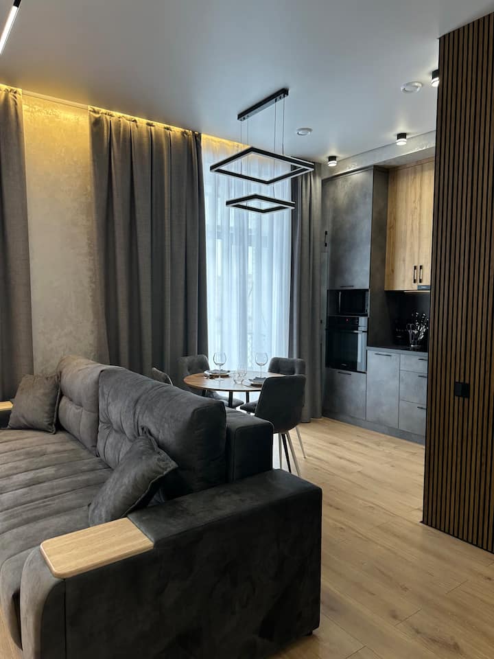 Ჩვენ მივესალმებით ახალ და მუდმივ მაცხოვრებლებს, ყოველთვის გახსნილი და მეგობრული! Ჩვენ ვაფასებთ კომფორტსა და სისუფთავეს, ამიტომ ჩვენს ბინებში ყველაფერი გამორჩეულია. Ჩვენი მიზანია, სტუმრებმა თავი ისე იგრძნონ, როგორც საკუთარ სახლში და სრული დასვენება სრული კომფორტით. Ნებისმიერი პრობლემისა და შეკითხვის შემთხვევაში ჩვენ მზად ვართ დღე ‑ ღამის ნებისმიერ მონაკვეთში