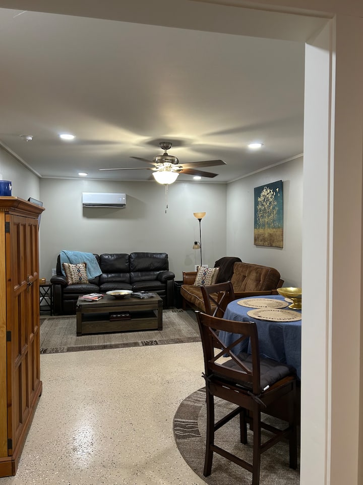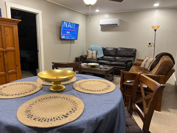 Დაისვენეთ ამ მშვიდ, 1BR სოფლად, როსვილში (ჯორჯია). სრულად აღჭურვილი სამზარეულო, სამუშაოსთვის განკუთვნილი 2 სივრცე, შემოღობილი უკანა ეზო გრილ‑ბარბექიუთი და მყუდრო მისაღები ოთახი. Იდეალურია დისტანციური მუშაობისთვის, რომანტიკული დასვენებისთვის ან ხანგრძლივი სტუმრობისთვის. Მოყვება Wi-Fi, სარეცხი მანქანა/საშრობი და უფასო საპარკინგე ადგილი. Დაისვენეთ, დაიმუხტეთ და იგრძენით თავი ისე, როგორც საკუთარ სახლში! ჩატანუგას ცენტრიდან რამდენიმე წუთის სავალზეა, ხოლო პარაპლანერიზმით ან ერთდღიანი გასეირნებით 1‑2 საათში მოინახულებთ