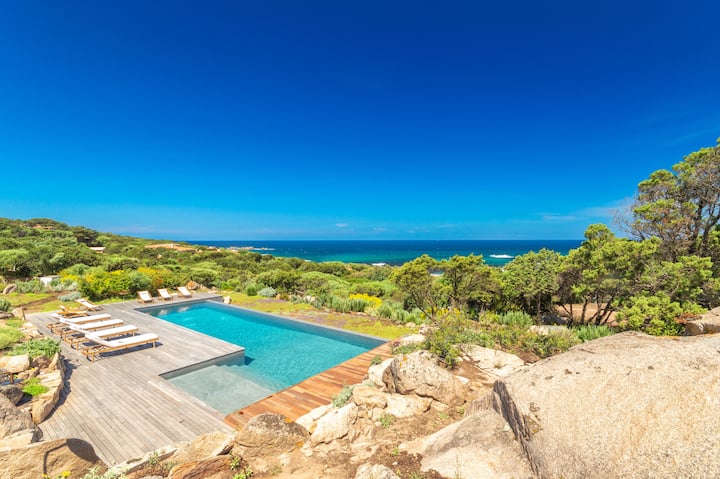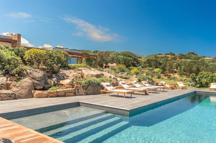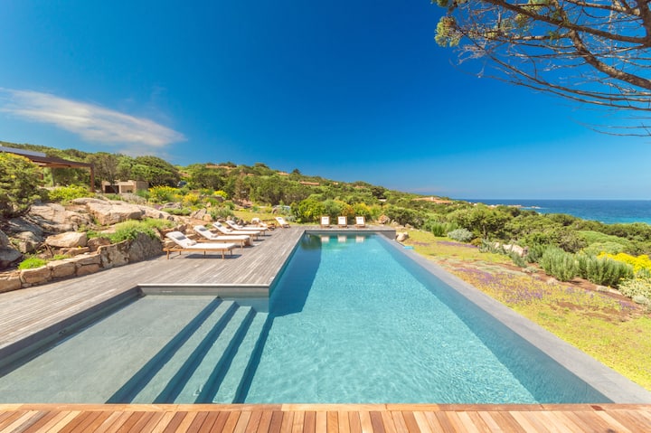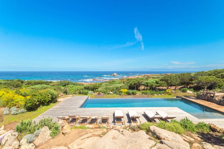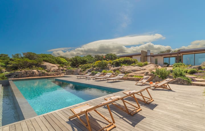 Სახლი, რომელიც არიდული და დახვეწილი არქიტექტურული პროექტის შედეგია, დომინანტურ მდგომარეობაშია, ჩრდილო-დასავლეთის ექსპოზიციით და ზღვის 180 გრადუსიანი ხედით, რომელიც თვალწარმტაც მზის ჩასვლას იძლევა ყოველღამე ოქროსფერსა და იასამანს შორის ჩრდილების ცის შესაფერად, ასევე, პანორამა, რომელიც ასინარადან ბონიფაციოს თეთრ კლდეებამდე მერყეობს.