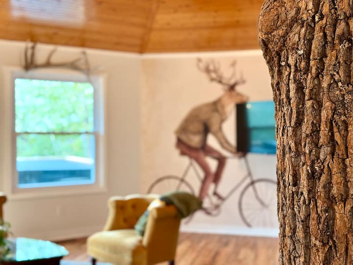 Მყუდრო ელეგანტური მრგვალი სახლი ტყეში