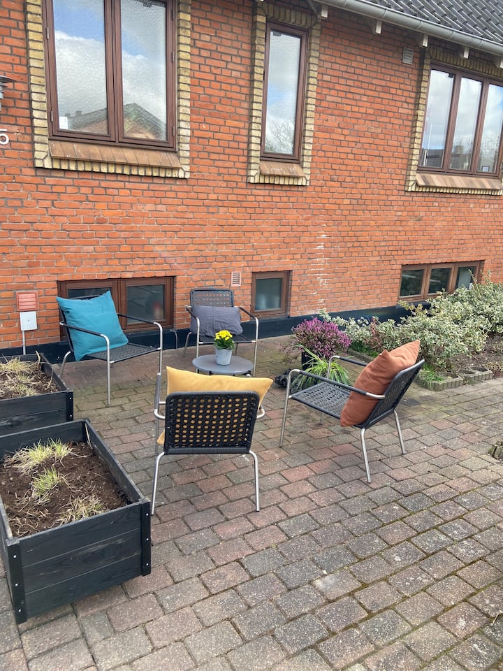 - დასასვენებლად დასაქირავებელი საცხოვრებლები გარე დასაჯდომი ადგილებით: Herning