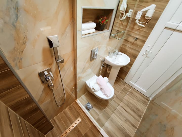 - საკუთარი, ოთახშივე მდებარე სააბაზანო