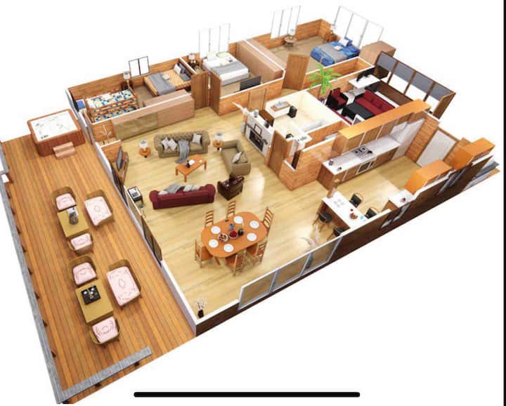 თევზაობისთვის, მაგიდისა და ეზოს თამაშებისთვის შესანიშნავი ადგილია. ზამთარში გექნებათ შესაძლებლობა, ისარგებლოთ მყუდრო ბუხრით, თევზაობით ყინულზე, თოვლმავლებით გასავლელი ბილიკებითა და დეტროიტის მთის სასრიალო ბორცვების სიახლოვით. შესანიშნავი ვარიანტია დიდი ოჯახისთვის. 3 საათის სავალზეა მეიპლ‑გროვი, ხოლო 65 წუთის სავალზე — ფარგო. დამატებითი გადასახადის სანაცვლოდ შეგიძლიათ პლატფორმით სარგებლობა.