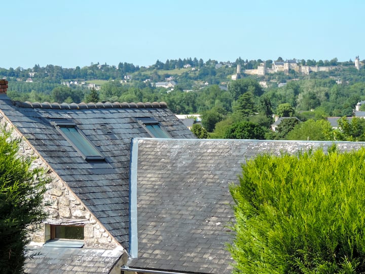 Ჩვენ ვცხოვრობთ ქალაქ ჩინონის კიდეზე. Მოგვწონს, რადგან საჭიროებისამებრ, ორივე სამყაროდან საუკეთესო გვაქვს - ტყე და ვენახები ჩვენს კართან და ახლომდებარე ქალაქი. Ჩინონის შუა საუკუნეების ცენტრი დაშორებულია 1,9 მილით ან 3 კილომეტრით (ფეხით 30-35 წუთის სავალზე). Უახლოესი სუპერმარკეტი (Super U) დაშორებულია 0,9 მილით ან 1,4 კილომეტრით (ფეხით 15 წუთის სავალზე). Ჩვენი ადგილობრივი ბულანჟერი ჩვენგან 0,5 მილში ან 0,8 კილომეტრშია. (ფეხით 10 წუთის სავალზე). Ჩვენ გვაქვს შესანიშნავი პიცის რესტორანი და წაღება, La Bonne Note, სულ რაღაც 300 მეტრის მოშორებით. Ჩინონი დაკავშირებულია ველოსპორტის მარშრუტთან „Loire à vélo“, ხოლო ველოსპორტის ბილიკები ბრტყელი, ლამაზი და ძალიან უსაფრთხოა. 0,3 მილის ან 0,5 კილომეტრის რადიუსში შეგიძლიათ გაიაროთ სპეციალური ციკლის ბილიკი შატო-დუ-რივაუსამდე და ქალაქ რიშელიემდე დაახლოებით 19 კმ-ის დაშორებით. Ჩინონის რკინიგზის სადგური, რომელიც პირდაპირ ტურების ქალაქამდე მიდის, ჩვენგან ზუსტად 5 კმ-შია, რაც იმას ნიშნავს, რომ სტენსტედიდან ტურების მიმართულებით გარიგების შემთხვევაში, შეგიძლიათ ჩვენთან ერთად იყოთ შაბათ-კვირას, გაერთიანებულ სამეფოში!