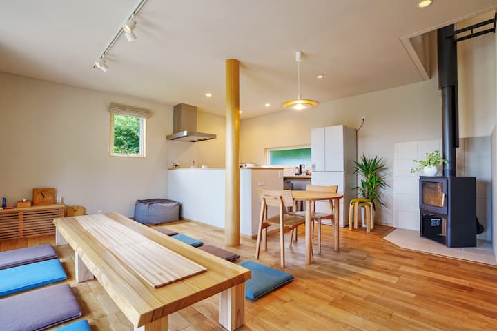 შენობა მყუდრო სახლია, რომელიც აგებულია ბუნებრივი მასალებით, მაგალითად, მყარი ხითა და დიატომიტით, რომელიც გუნმის პრეფექტურიდან მოაქვს.საცხოვრებელს აქვს მაღალი თბოიზოლაცია და ჰერმეტულობა, ამიტომაც თბილ და კომფორტულ გარემოში იქნებით ზამთარშიც კი.დაისვენეთ შეშის ღუმელის სითბოში.