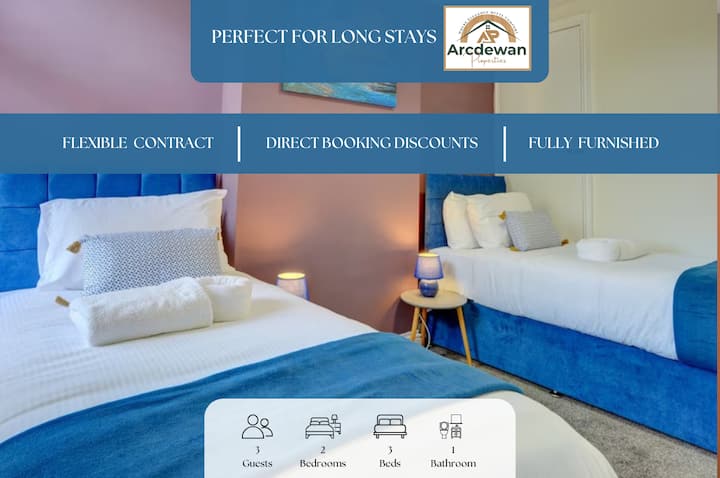 Მყუდრო 2-საძინებლიანი, 3-საწოლიანი, 1-საწოლიანი საცხოვრებელი გრძელი ვადით სტუმრობისთვის