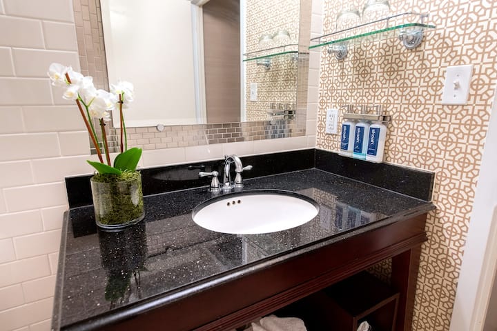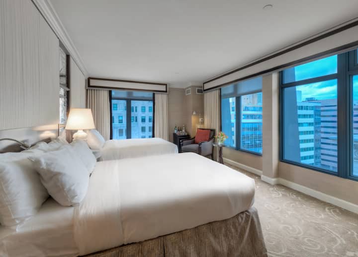 Franklin Park View Two Doubles‑ში, რომელიც ორი დიდი საწოლი და დახვეწილი დეკორი გამოირჩევა, ფრანკლინ‑პარკის თვალწარმტაცი ხედები გელით. სწრაფი Wi‑Fi კავშირის, Keurig‑ის ყავის აპარატისა და სრულად აღჭურვილი მინიბარის წყალობით, სტუმრობისას კომფორტსა და სიამოვნებას იგრძნობთ. გაიხალისეთ ბუნებრივი ნივთიერებებისგან დამზადებული სააბაზანოს აქსესუარებითა და რბილი ხალათებით, რომლებსაც ვაშინგტონში დახვეწილი და დაუვიწყარი სტუმრობა გელით.