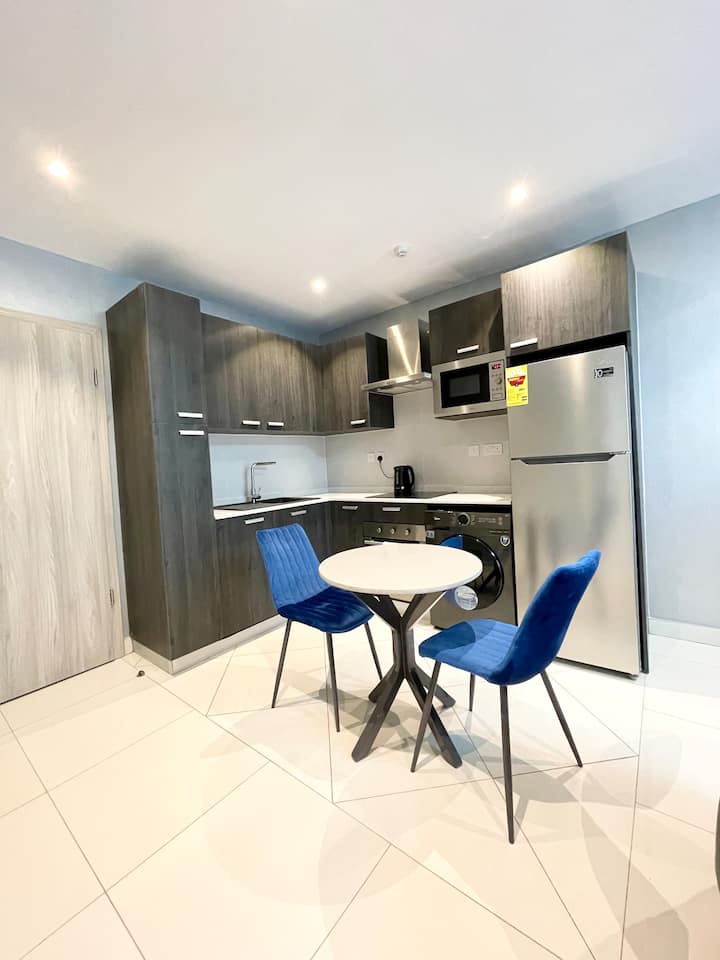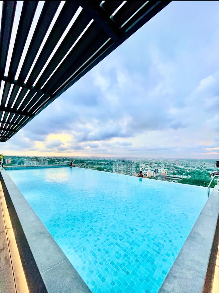 თანამედროვე საცხოვრებელი 1 საძინებლით და აუზით | აეროპორტთან