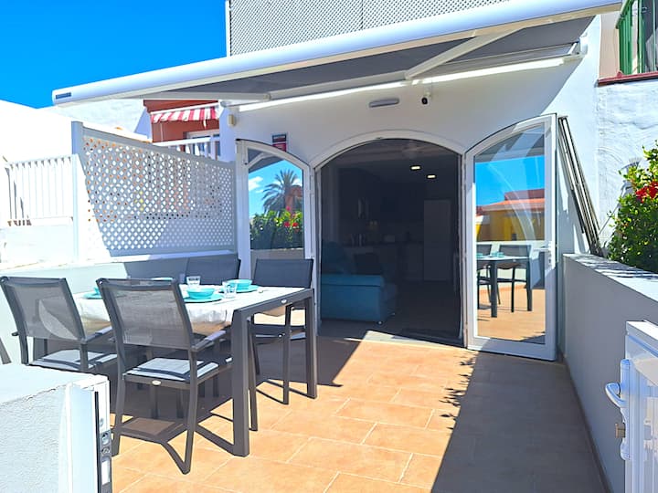 - დასასვენებლად დასაქირავებელი საცხოვრებლები გარე დასაჯდომი ადგილებით: Maspalomas