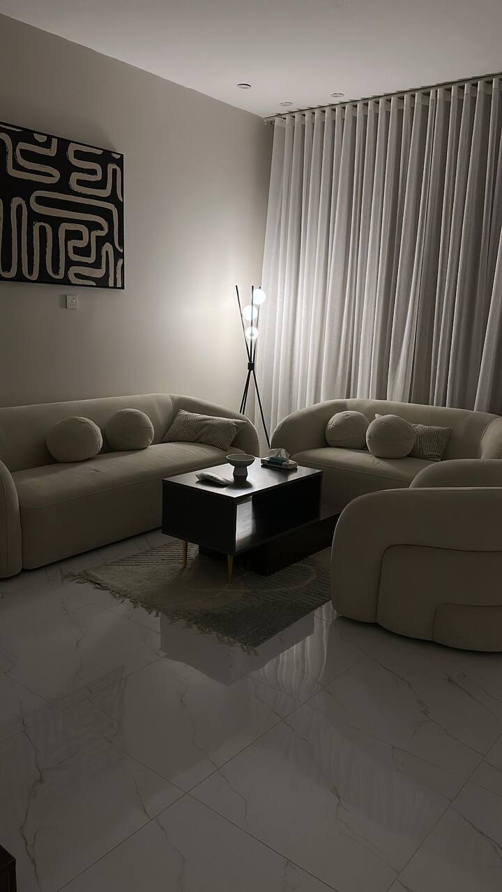 Ორსაძინებლიანი ბინა და თანამედროვე სტილის დივანი