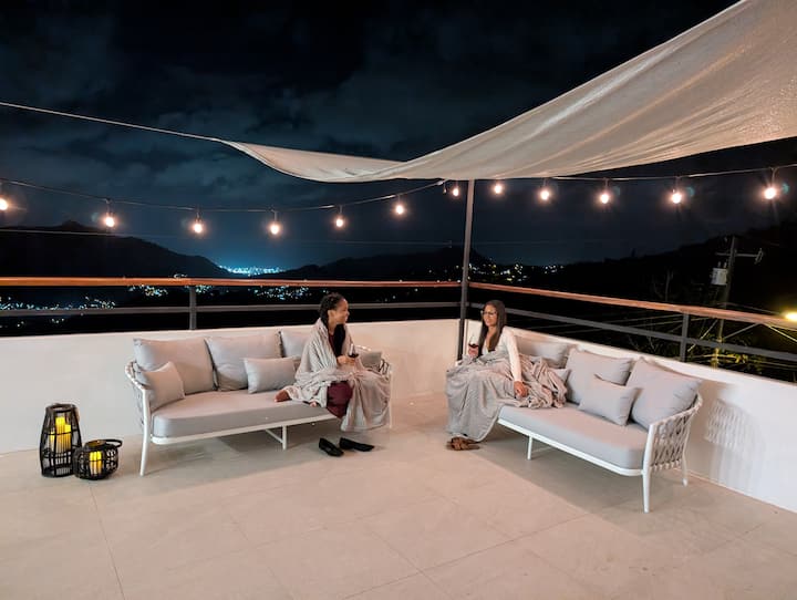 Ექსკლუზიური აპარტამენტის სტუმრებისთვის, თქვენი სახურავიდან იშლება არაჩვეულებრივი ხედები, მყუდრო დასაჯდომი ადგილები და იდეალური ადგილი მზის ჩასვლისთვის. Სამზარეულოს პატარა სივრცე და გრილი, ასევე, ხელმისაწვდომია ღია ცის ქვეშ ბარბექიუებისა და კვებისთვის.