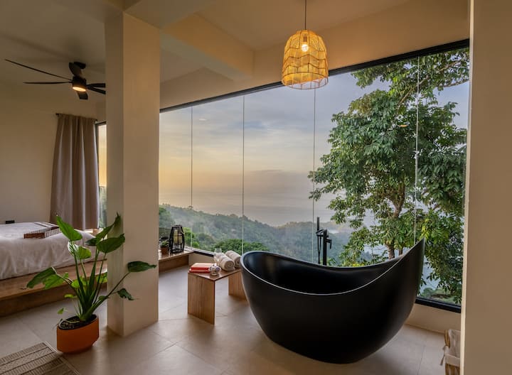 Დატკბით აყვავებული, დიდი ზომის საწოლით, რომელიც კარიბის ზღვასა და ტყის კალაპოტს გადაჰყურებს. Დააგემოვნეთ ჭიქა ღვინო მზის ჩასვლისას ცალკე, პანორამულ სახურავზე. Იცხოვრეთ სრულად უნიკალურ სივრცეში, სადაც იაპონური ტახტი დგას ცალკემდგომი აუზის ფონზე ხეზე და უსასრულო ოკეანეში. გაეცანით პარამინს და შეიყვარეთ მისი ხალხი და კულტურა