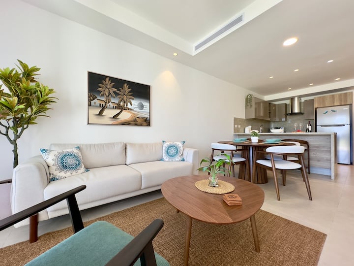 კონდომინიუმი გოლფისა და აუზის ხედით, ჯაკუზით, პლაჟთან ახლოს