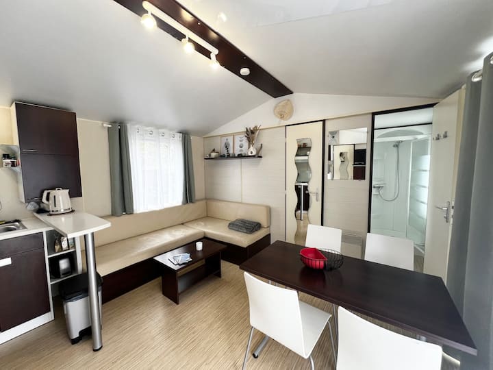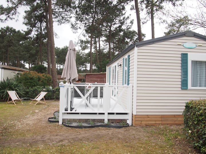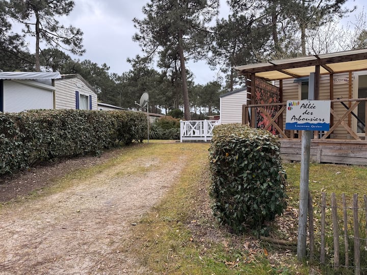 Მოდით და დატკბით ჩვენი ფართო და კეთილმოწყობილი Mobil-სახლით, რომელიც მდებარეობს წყნარ ადგილას კერძო სამანქანო გზით, Camping 3* Les Jardins du Littoral-ში (ადგილობრივი „Le Huga“). Ეს მშვიდი და ავტომობილის გარეშე ბანაკის ადგილი მდებარეობს ფიჭვნარის შუაგულში, ლაკანაუ-ოკეანის შესასვლელთან, ატლანტის ოკეანის პლაჟებიდან 4 კმ-ში, მუჩიკის ტბიდან 3 კმ-ში და ველობილიკების ძირში!