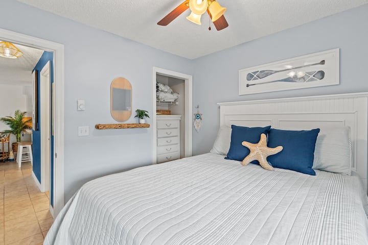 Დასასვენებელი 2BR სანაპირო კონდომინიუმი პლაჟიდან და ფიცარნაგიდან რამდენიმე წუთის სავალზე. (გაეცანით აღწერილობის სრულ ვერსიას.)
