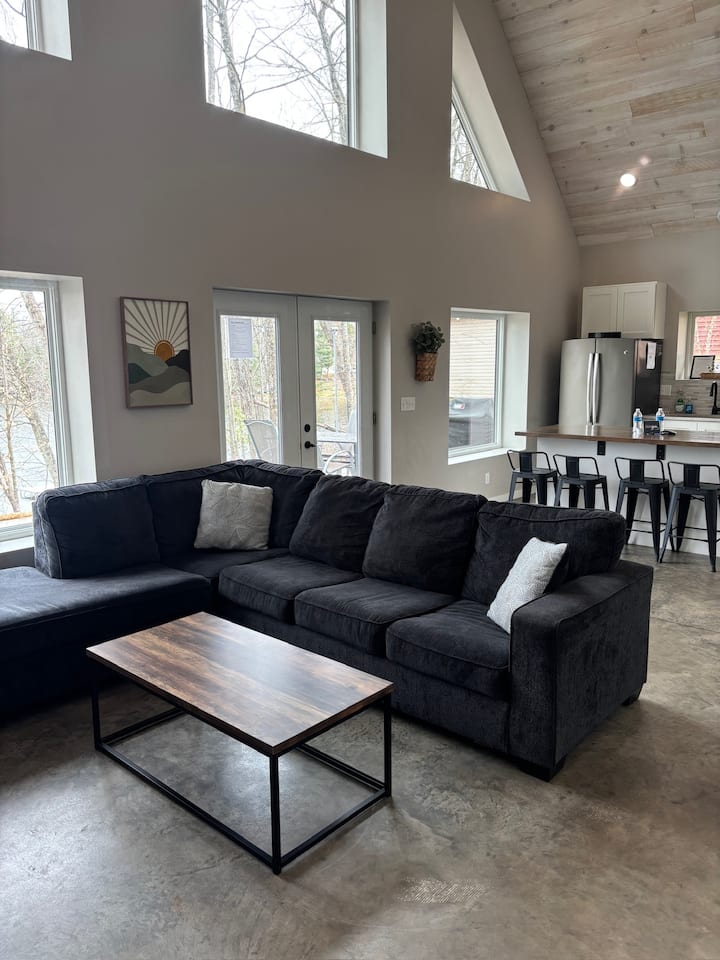 Შიგნით არის 24 ფუტიანი შეთეთრებული ფიჭვის საკათედრო ტაძრის ჭერი ფართო ფანჯრებით, რომლიდანაც იშლება ტბის ხედები ხის სახლის თითქმის ყველა უბნიდან, მათ შორის, მთავარი ლოფტიდან. Სათამაშო ოთახი/ავტოფარეხი იდეალურია ბავშვებისთვის, პლანშეტისა და არკადული თამაშების ასორტიმენტით და სათამაშო სისტემებისთვის განკუთვნილი დიდეკრანიანი ტელევიზორით.