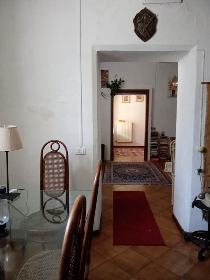 დაახლოებით 150 კვადრატული მეტრის უზარმაზარი სივრცე მთლიანად თქვენ განკარგულებაში იქნება, ბოლონიის გორაკებისა და მადონა‑დი‑სან‑ლუკას დაცული პარკის ძირში, მდინარე რენოდან და ვიცანოს ხიდიდან 200 მეტრის, ხოლო მარკონის მუზეუმიდან 1 კილომეტრის მოშორებით. Ამ სახლში, რომელიც მეტწილად ვინტაჟური ან გადამუშავებული ავეჯითაა გაწყობილი, 1930-იანი წლების შენობის ზოგიერთი სულისკვეთების შენარჩუნების პარალელურად, თქვენ ნახავთ უამრავ ნახატს, წიგნს, თამაშსა და მცენარეს. ეს ისტორიული საცხოვრებელი შენობაა (ადრე მას „Societa Anonima Cartiere del Maglio e Brodano“ ფლობდა), რომელშიც მე და ჩემი პარტნიორი პირველი სართულის ცალკე ნაწილში ვცხოვრობთ. სიამოვნებით ვუყვებით სტუმრებს სახლის მეორე ნაწილში, ჯადოსნურ ადგილას, რომელსაც ვარდები და ჟასმინი აკრავს და რომლისკენაც ცალკე შესასვლელი კარი გვაქვს პირველი სართულის შიდა კიბიდან. სტუმრებს შეუძლიათ დამოუკიდებლად, მაქსიმუმ ხუთ ადამიანიან ჯგუფებში, მარტო ან წყვილებად განთავსება, ხოლო საცხოვრებელი სივრცე მთლიანად მათ განკარგულებაში იქნება. 2 წლამდე ასაკის ბავშვებისთვის სტუმრობა უფასოა, თუმცა თუ 12 წლამდე ასაკის ბავშვები გყავთ, დამატყობინეთ დაბინავების წინა დღეს, რადგან მათთვის მნიშვნელოვანი ფასდაკლებები ვთავაზობთ, ჯავშნის გაფორმების შემდეგაც კი. ბორგოს გარეთ არის უფასო საპარკინგე ადგილი, ხოლო სახლში ხელმისაწვდომია ველოსიპედები.