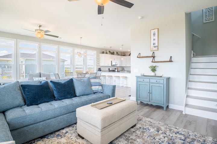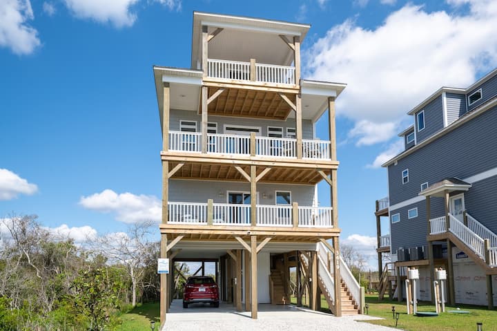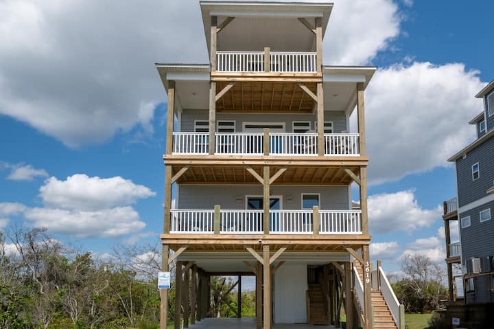 Ჩრდილოეთ ტოპსაილ-ბიჩზე მდებარე ეს ულამაზესი, სრულიად ახალი სახლი შეასრულებს თქვენს ოცნებებს კუნძულზე დასვენებაზე! Წყლისპირა საცხოვრებელი, საიდანაც თვალწარმტაცი ხედი იშლება ჩრდილოეთ ტოპსაილ-ბიჩის ხმასა და ოკეანეზე. Მიიღეთ მაქსიმალური სარგებელი თითოეული სართულის წინა და უკანა ტერასებით! Მარტივად გასაწმენდი LVP იატაკი, უჟანგავი ფოლადის ტექნიკა, გრანიტის ზედაპირები, მარმარილოს ვანა-ტუალეტები, გარე საშხაპე და შიდა ლიფტი, რაც ნიშნავს პლაჟის მეტ დროს და ნაკლებად უპრობლემო შაბათ-კვირას! Პირველი დონე მასპინძლობს სამ სტუმარს, თითოეული მათგანი წყლის ხედით აივნით. Მთლიანი მეორე სართული არის ფართო ღია საცხოვრებელი და სასადილო სივრცე, რომელსაც გასრიალებული კარები მიუყვება დაფარულ ტერასას, რაც მას იდეალურ ადგილად აქცევს გასართობად. Მთლიანი ზედა სართული არის უმშვენიერესი ძირითადი საძინებელი ფლიგელი ორი ცალკე აივნით, მოსასვენებელი ოთახით, შესასვლელი კარადით და ფართო ფლიგელით წყლის კარადით, აბაზანით და საშხაპეში გასეირნებით. Დაიძინეთ ოკეანის ხმაზე და გაატარეთ დღეები ქვიშაში ცივ სასმელთან ერთად.