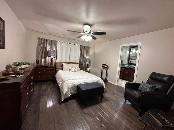 Გამარჯობა! ჩვენ ვართ ტეხასის მკვიდრნი და გვიყვარს სტუმრების მასპინძლობა მთელი წლის განმავლობაში. Სტუმრებს ვმასპინძლობთ ქორწილებში, გამოსაშვებ საღამოებზე, საზაფხულო მდინარის გასართობად, მანქანების რბოლებით, ACL-ით და სხვა საკითხებით! Ჩემი თანამასპინძელი/ქალიშვილი ტეხასის შტატის სტუდენტია და ჩვენი სახლის სამართავად ადგილზე ცხოვრობს. Მოთხოვნის შემთხვევაში, ის შეიძლება იყოს თქვენი სტუმრობის განმავლობაში. Ჩვენ გთავაზობთ ყველა ვიზიტორს განსაკუთრებული ტეხასის სტუმართმოყვარეობითა და შესანიშნავი საცხოვრებლით! Ნუ დააყოვნებთ, დაჯავშნეთ ჩვენი სახლი მხიარული და დასასვენებლად!