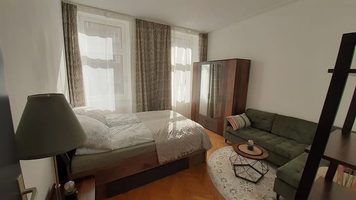 Მყუდრო, ფართო 2-ოთახიანი ბინა ვენაში (1110) – იდეალურია გრძელვადიანი დამსვენებლებისთვის, ქალაქის მაძიებლებისა და საქმიანი მოგზაურებისთვის!