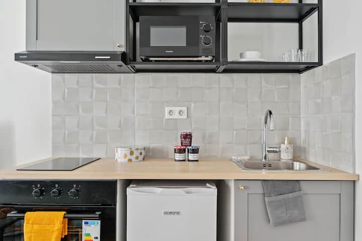 Დატკბით პარიზის ბასტილიის შუაგულში სტუმრობით ამ მშვენიერ 1-ოთახიან, 35 კვადრატულ მეტრ ფართობზე, რომელიც მდებარეობს დაცული საცხოვრებელი კორპუსის 1 სართულზე ლიფტის გარეშე. Დამოუკიდებელი დაბინავება 15:00 -დან ახლომდებარე მაღაზიაში გასაღების აღებით. Ხელმისაწვდომია Wi-Fi, რომელიც შესანიშნავია როგორც სამსახურისთვის, ისე დასვენებისთვის. Საჭიროა ანაზღაურებადი გირაო ზიანისთვის, პლატფორმის წესების სრული შესაბამისად.