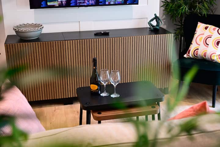 Დახვეწილი 1-საწოლიანი ბინა ბაღით ფოთლოვან პონტკანაში