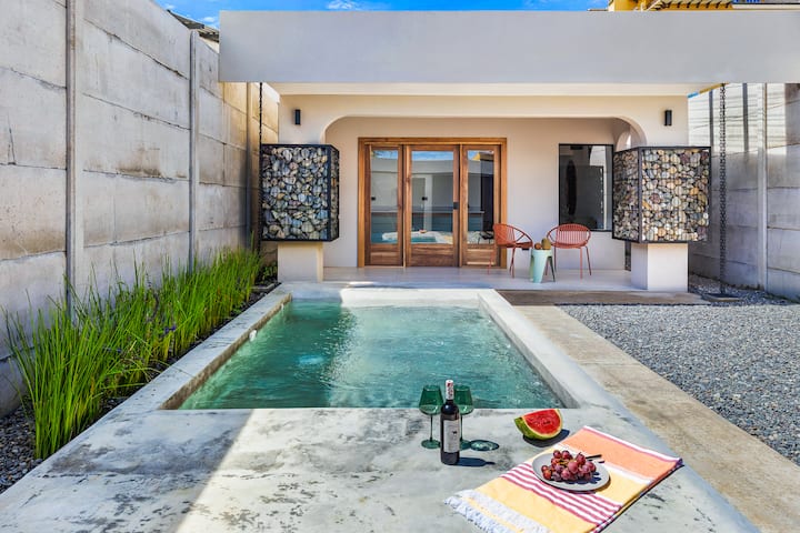 Ცალკე სახლი საცურაო აუზის საფეხურებით პლაჟიდან.
