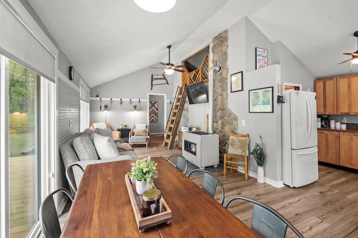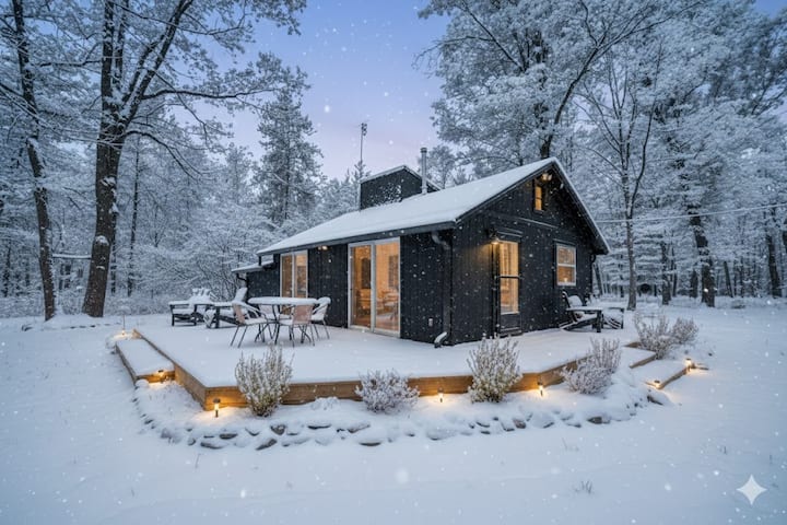 Ტყის ეს თავშესაფარი მშვიდი განმარტოებითაა, მყუდრო და ელეგანტური 2-საძინებლიანი ხის სახლი ფართო ლოფტით გთავაზობთ სოფლის მომხიბვლელობისა და თანამედროვე კომფორტის იდეალურ ნაზავს.
