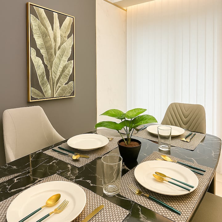 Შეიგრძენით დახვეწილი კომფორტი ამ ელეგანტურ 3BR აპარტამენტში, საიდანაც იშლება მზის ჩასვლის თვალწარმტაცი ხედი და სრული წვდომა ლუქს-კლასის კურორტის ტიპის საყოფაცხოვრებო პირობებზე.