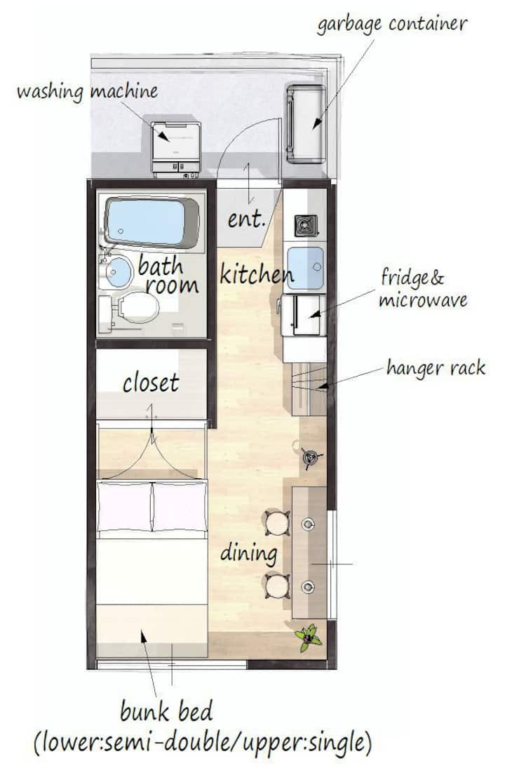 Სპეციალური ფასდაკლება გახსნის აღსანიშნავად | შინჯუკუს სადგურიდან პირდაპირ 12 წუთის სავალზე | Quiet 1R Sakurajo-suiso-ში | 2 ადამიანისთვის ხელმისაწვდომია Wi-Fi