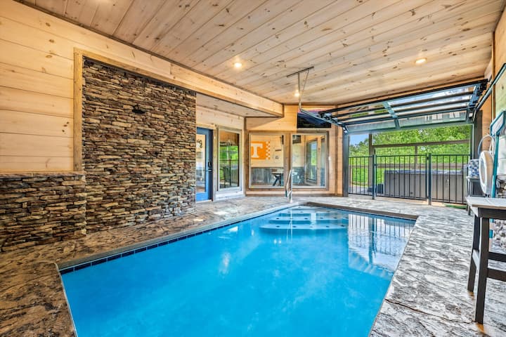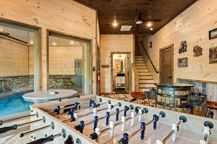 Ამ ხის სახლის ყველაზე საოცარი მახასიათებელი ქვედა დონეზე შეგიძლიათ იხილოთ. Შიდა აუზი მთელი წლის განმავლობაში 83-86 გრადუსამდე გათბება. Შედის აუზის სიღრმე 3 ფუტი და აუზის პირსახოცები. Საცურაო აუზს აქვს დასაჯდომი სივრცე.