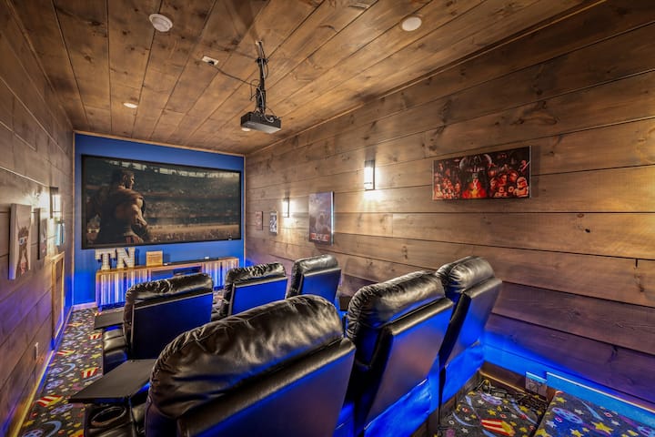 Როდესაც გატლინბურგში არ შოპინგობთ, ან აუზში ცურავთ, შანსი გაქვთ, თეატრალურ ოთახში გაატაროთ დრო. Ეს სივრცე გთავაზობთ სტადიონის ტიპის დასაჯდომებს 7 ადამიანისთვის, Bose-ის ხმის ბარსა და 65" ტელევიზორს. Საკაბელო ტელევიზიის ან ნაკადულის ყურება შეგიძლიათ თქვენი საყვარელი მომსახურების მეშვეობით.