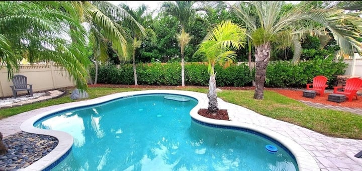 Უპრობლემო 4BR/3BA, ცალკე აუზი, წუთი პლაჟამდე!