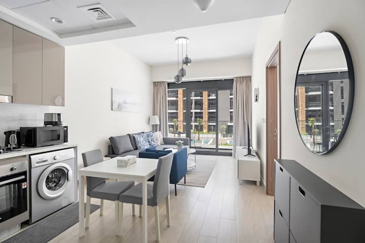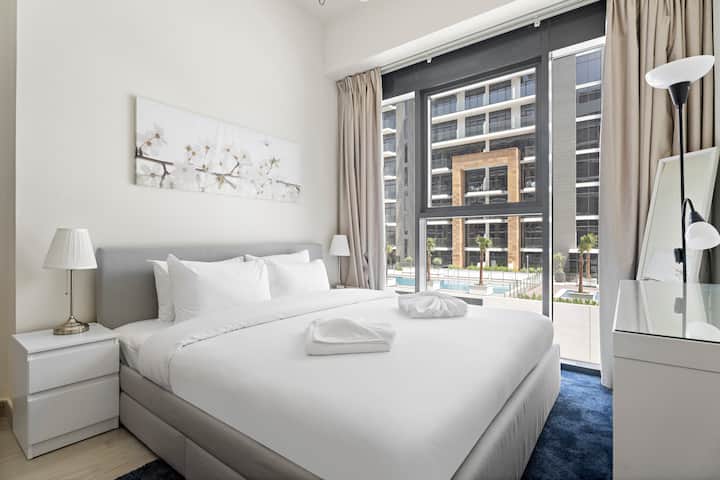 Ეს დახვეწილი 1-საძინებლიანი ბინა აზიზი რივიერა 43-ში გთავაზობთ მშვიდ საცხოვრებელს დუბაის მეიდანის რაიონში. Ბინაში არის კომფორტული დიდი ზომის საწოლი, თანამედროვე ღია სამზარეულო, კომფორტული სასადილო სივრცე და ცალკე აივანი მშვიდი ხედებით - იდეალურია დილის ყავის ან საღამოს დასვენებისთვის. Სტუმრებს შეუძლიათ ისარგებლონ ისეთი საყოფაცხოვრებო პირობებით, როგორიცაა საცურაო აუზი და სპორტდარბაზი. Დუბაის ცენტრიდან და ბურჯ-ხალიფადან სულ რაღაც 10 წუთის სავალზე მდებარეობს. ის იდეალურია მოგზაურებისთვის, რომლებსაც სურთ მშვიდობიანი, თუმცა ერთმანეთთან დაკავშირებული შთაბეჭდილებები.