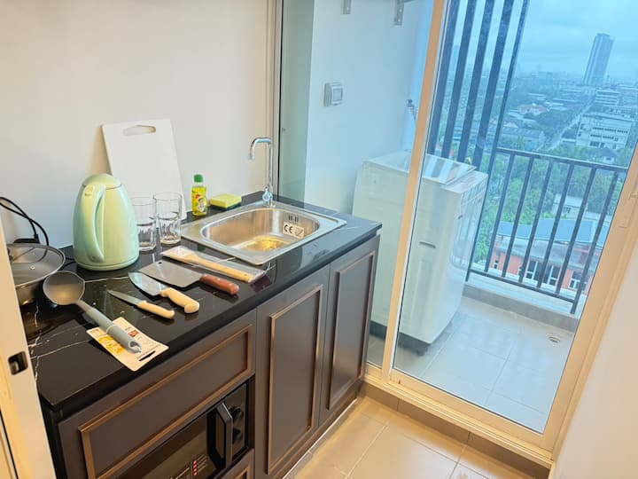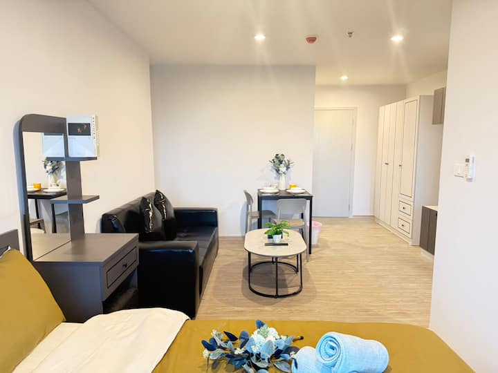 C6 ბანგკოკის მშვიდ რაიონში მდებარე სამუშაო ბინა, მოსახერხებელი ტრანსპორტირებისთვის, შესანიშნავი ინტერნეტი