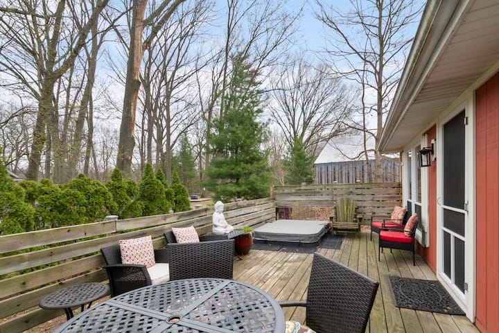 წითელი კოტეჯი მეიპლ-რიჯში ჰიდრომასაჟიანი აუზით!