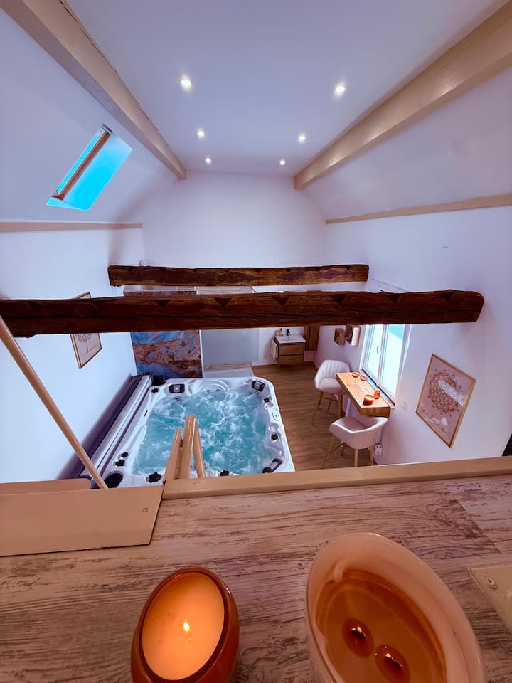 Ანტრესოლი: საძინებელი ჰიდრომასაჟიანი აუზით