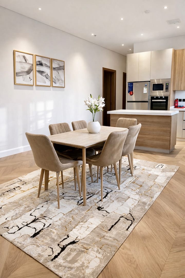 KJ | ელეგანტური 3-ოთახიანი ბინა მისაღები ოთახით
