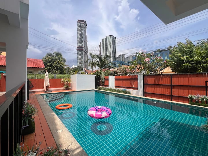 H1 Jomtien Beach ცალკე აუზი ვილა 50 მ პლაჟამდე 5 საძინებელი 7 საწოლი ფართო ვილა