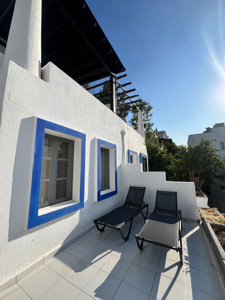 - დასასვენებლად დასაქირავებელი საცხოვრებლები გარე დასაჯდომი ადგილებით: Yalıkavak