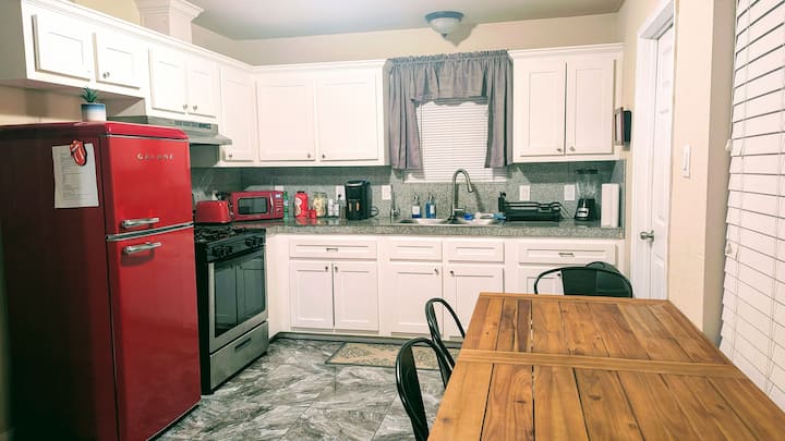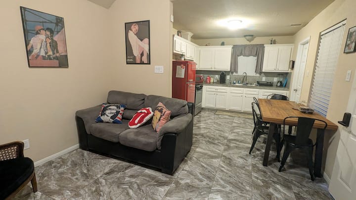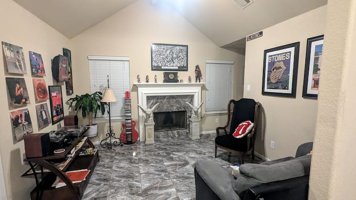 მაგალითად, ჩემთან სტუმრობისას თქვენს საყვარელ მუსიკას მოუსმენთ მუსიკალურ ბარში, ხოლო ღამე კი ძალიან კომფორტულ საწოლში გაათენებთ! Სახლი არ არის მხოლოდ ადგილი ჰიუსტონში დასაბინავებლად, ჩვენი კურირებული ოთახები გამოგიგზავნით ათწლეულების განმავლობაში როკ-მუსიკის დროს - ჩვენს ოთახებსა და მთელ სახლში მუსიკალური სამახსოვრო ნივთებით, ჩანაწერების დასაკრავად, ჩანაწერების ბიბლიოთეკითა და ატმოსფეროთი, რომელიც დაგამახსოვრებთ თავს! Დატკბით სტილით ამ გამორჩეულ საცხოვრებელში.